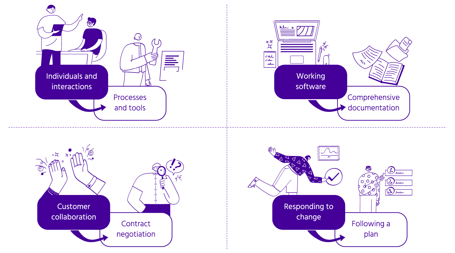 Los valores están en el corazón del [desarrollo Agile del software](https://agilemanifesto.org/), guiando los principios y prácticas que permiten a los equipos entregar soluciones de alta calidad y centradas en el cliente de manera eficiente. En este contexto, profundicemos en los valores fundamentales que sustentan el enfoque Agile y su impacto en el proceso de desarrollo de software.