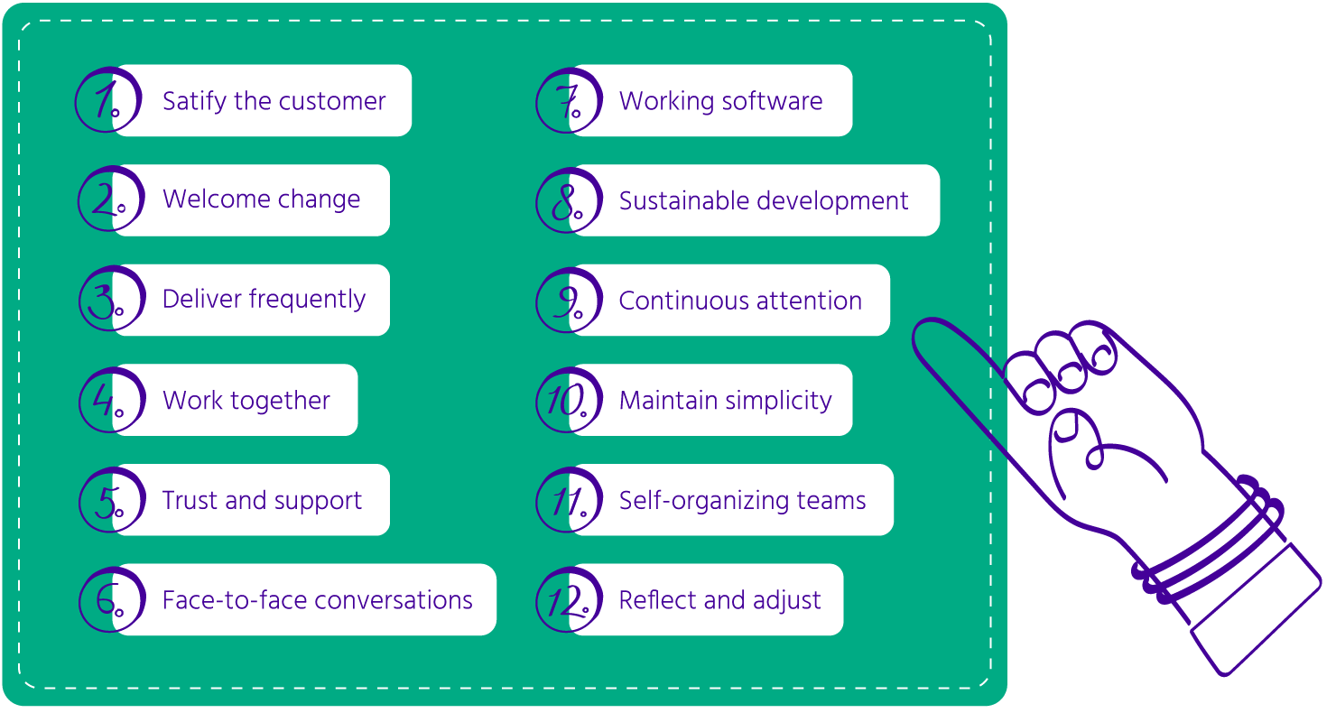 Los principios en el Desarrollo de software Agilearrow-up-right sirven como filosofías guía que empoderan a los equipos para abrazar el cambio, fomentar la colaboración y entregar valor de manera consistente a los clientes.